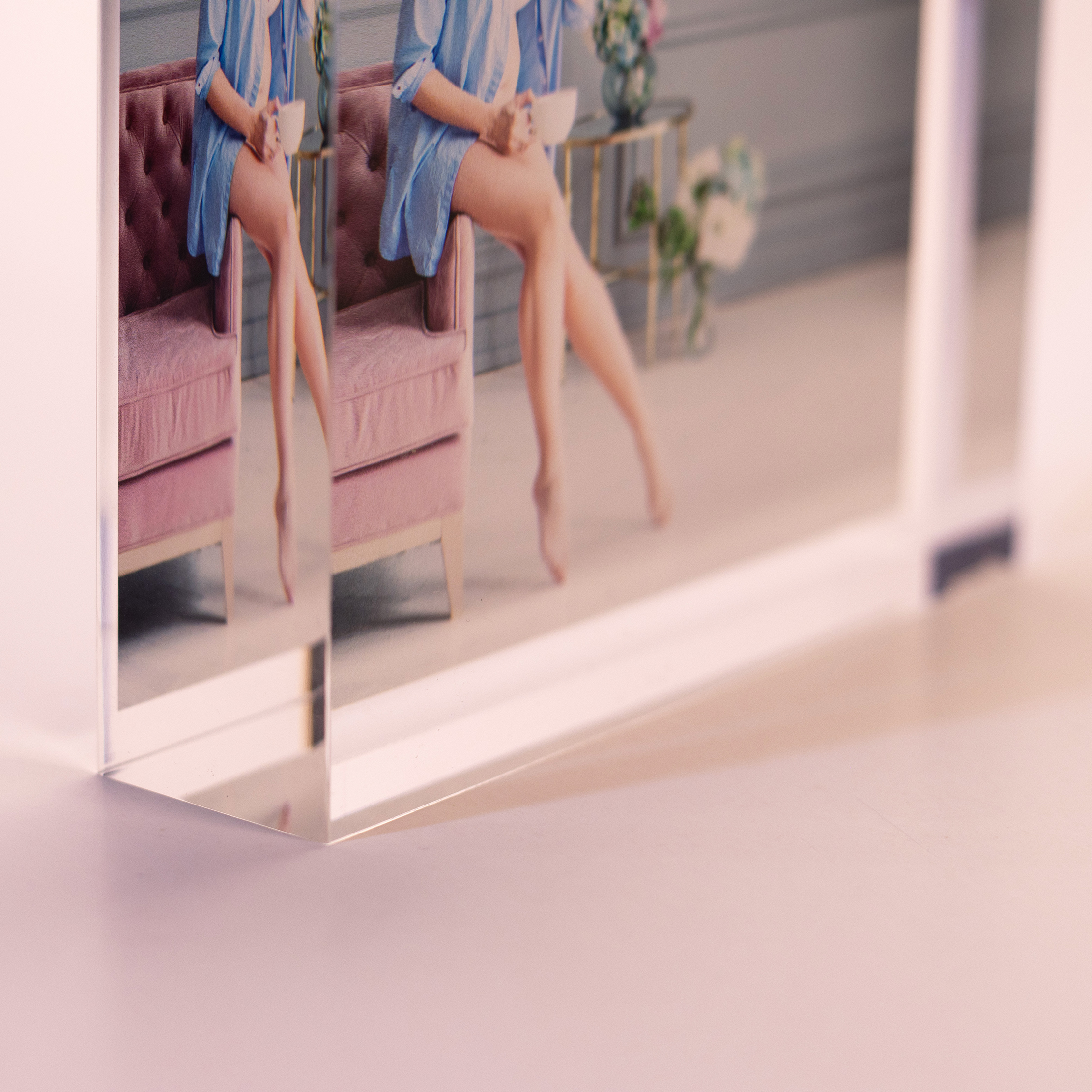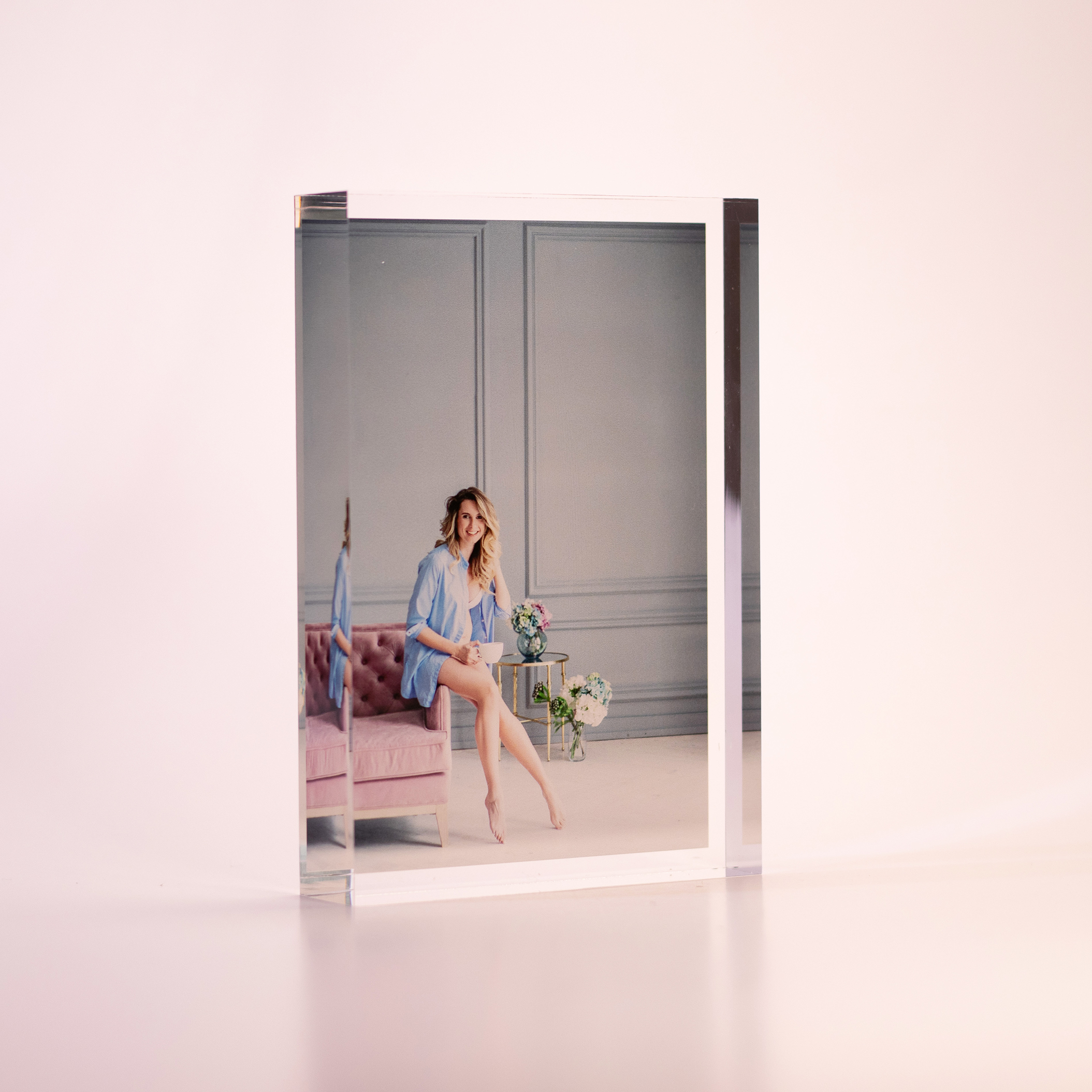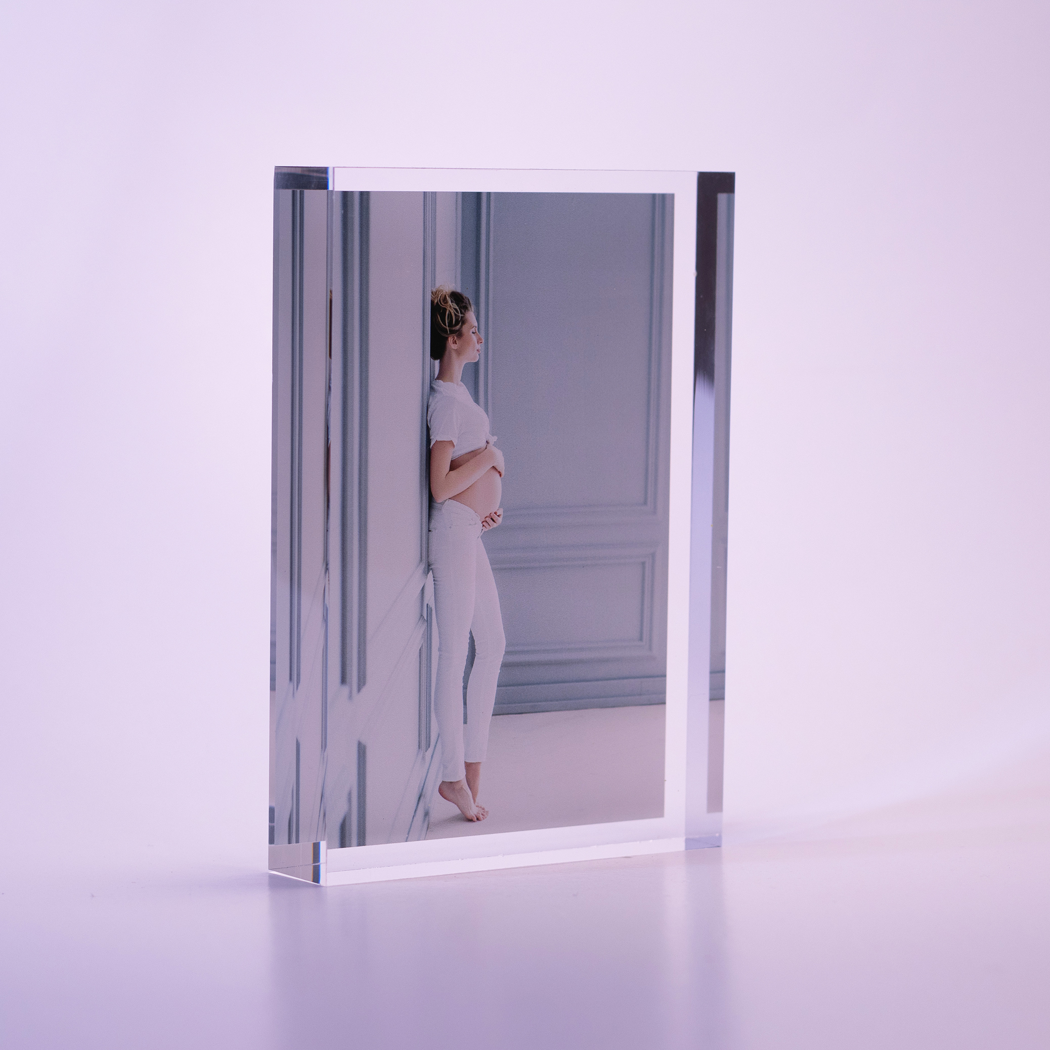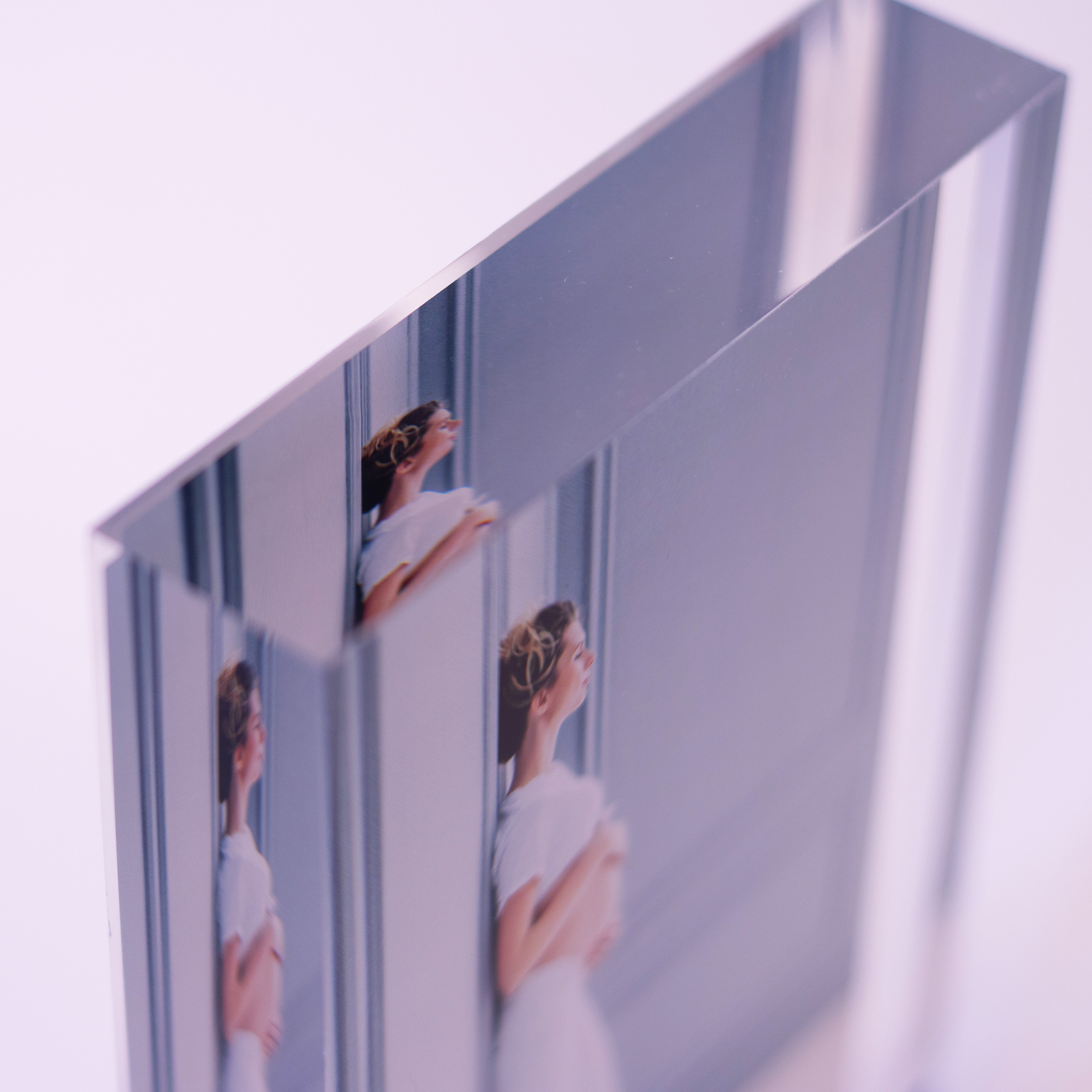 Suas fotos são impressas em alta definição, em um bloco de acrílico virgem com 2,5 centímetros de espessura. A profundidade e forma como a luz irradia através do acrílico cristal proporcionam uma nova dimensão a como a fotografia ou a arte são visualizadas.